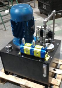 Roydisa fabrica unidades generadoras de presión hidráulica, con motor horizontal y bomba externa o con motor vertical con brida y bomba sumergida. Se incorpora a la central hidrúlica el panel de comando con las correspondientes válvulas direccionales y de control montadas e interconectadas